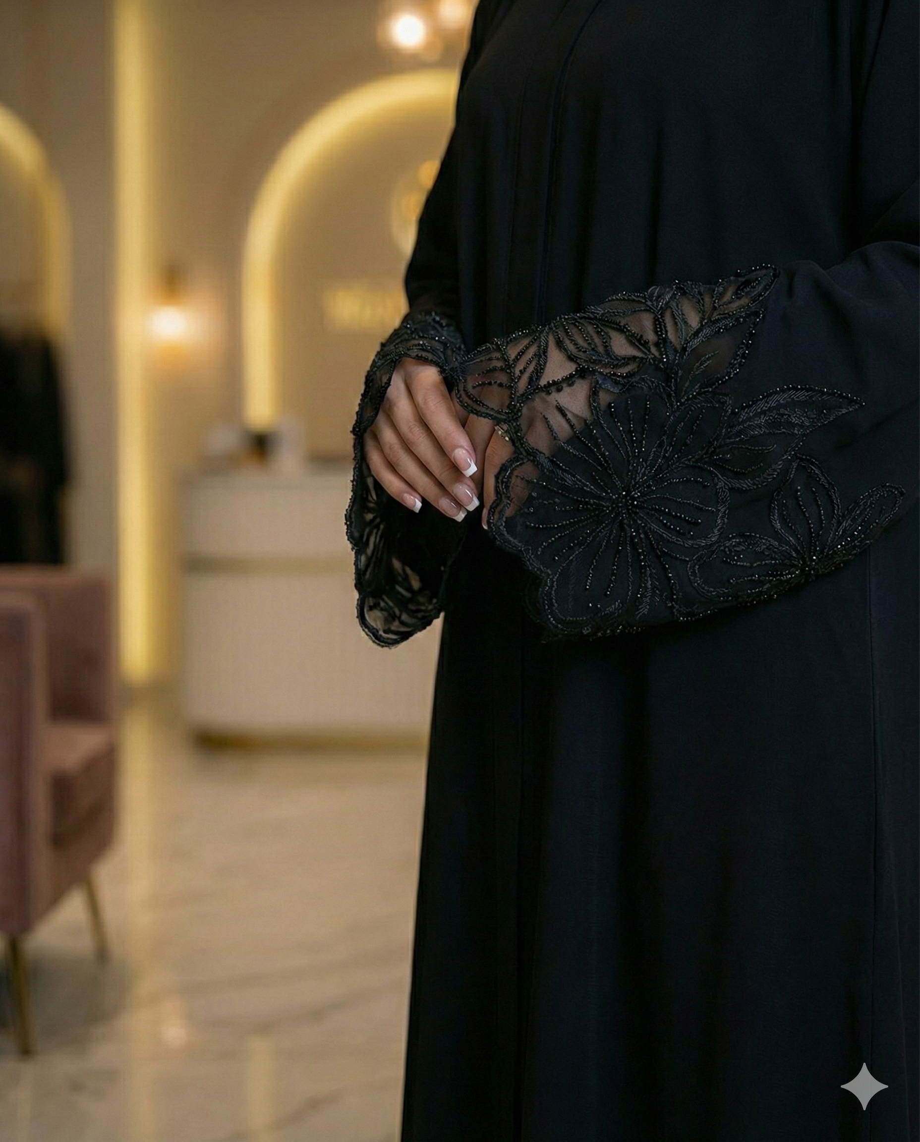Midnight Bloom Lace Abaya